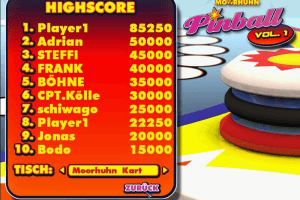 Players are tasked with mastering a virtual pinball table, using flippers to keep the ball in play and score points. The table is designed with Moorhuhn-themed obstacles and challenges, providing an engaging environment for pinball enthusiasts and fans of the franchise alike. The game embraces the quirky charm of the Moorhuhn character, integrating it into the pinball experience.