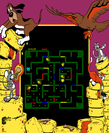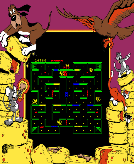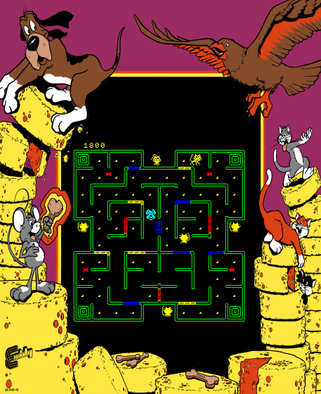 Developed by Exidy, Incorporated, this video game was released in 1982. Known for its unique twist on the classic maze genre, this arcade game has the player controlling a mouse navigating through a labyrinth filled with various perils. The task is to collect pieces of cheese while avoiding multicolored cats.