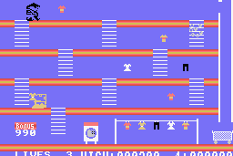 The visual style is characteristic of early 1980s video games, showcasing vibrant and simplistic graphics that reflect the technological capabilities of the era. Accompanied by a catchy 8-bit soundtrack, the audio complements the lively atmosphere of the game.