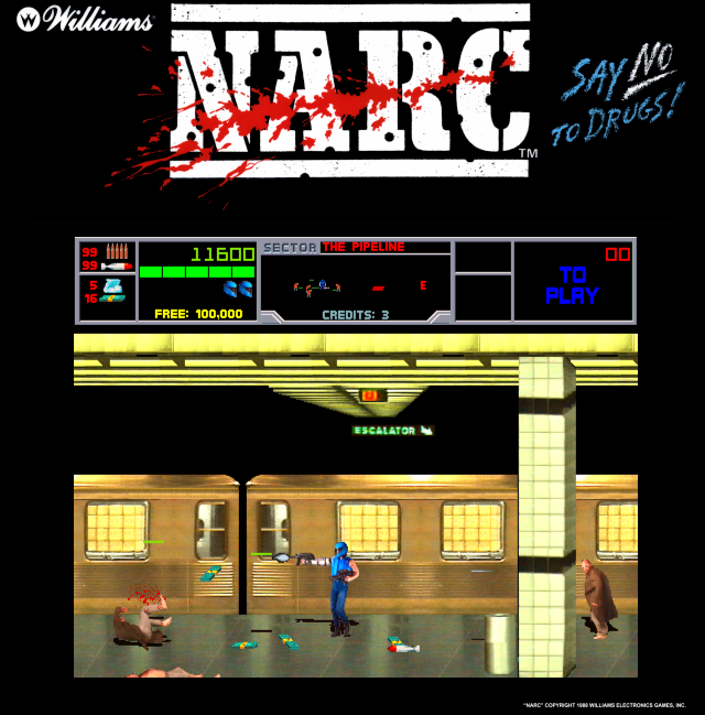 Released in 1990 by Williams Electronics Games, Inc., this arcade game offers an intense, action-packed experience that challenges players to battle against drug-related crime. Set in an urban environment, players take on the roles of law enforcement agents with a mission to dismantle a narcotics network.