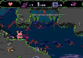 Set across various eerie and creepy locations, players must navigate through levels, overcoming obstacles and defeating enemies using the unique abilities of the three monsters. The game captures the essence of the animated series by featuring the monsters’ trademark scares and quirky personalities. Each character has special powers: Ickis can fly, Oblina can reach high places, and Krumm can hurl his own eyeballs as projectiles.