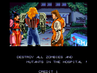 Released in 1994 by Data East Corporation, this arcade beat ’em up thrusts players into a world filled with supernatural horror and thrilling combat. Set in a dystopian future, humanity faces apocalyptic threats from zombies, vampires, and other monstrous creatures. Players can choose from three distinct heroes, each equipped with unique abilities and weapons, to battle through hordes of enemies.