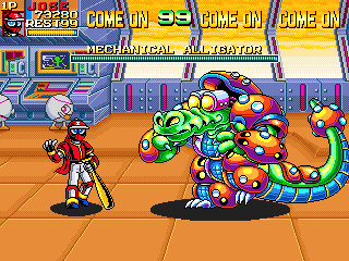 The game is noted for its vibrant and cartoonish visuals, incorporating bold color schemes and detailed sprite animations. The sound design complements the light-hearted atmosphere, featuring catchy tunes and amusing sound effects throughout the gameplay.