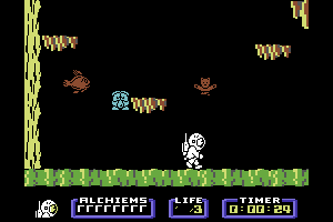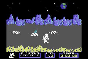 The gameplay is focused on exploration and puzzle-solving, requiring players to navigate through the moon’s caverns and chambers. Charlie is equipped with a helpful companion, a mole, which aids in digging through obstacles and discovering hidden passages. Players must carefully manage their resources and avoid various alien enemies scattered throughout the lunar landscape.