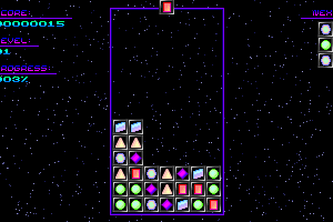 The gameplay involves stacking colorful gems in a vertical play area, aiming to align three or more gems of the same color either vertically, horizontally, or diagonally. As the game progresses, the speed increases, testing the player’s reflexes and strategic planning. Bonus points are awarded for chaining multiple combinations together.
