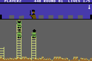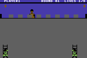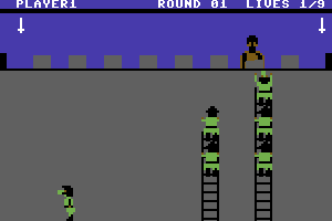 Players are thrust into a series of increasingly difficult battles, each requiring quick reflexes and tactical decision-making. The pixelated graphics evoke the simplicity of 1980s gaming, while the audio effects immerse players in the battle atmosphere.