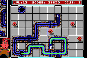 The game features a variety of pipe pieces, including straight lines, curves, and junctions, which players must rotate and place in the correct positions. As the levels progress, the complexity increases, requiring more intricate pipelines and faster decision-making.