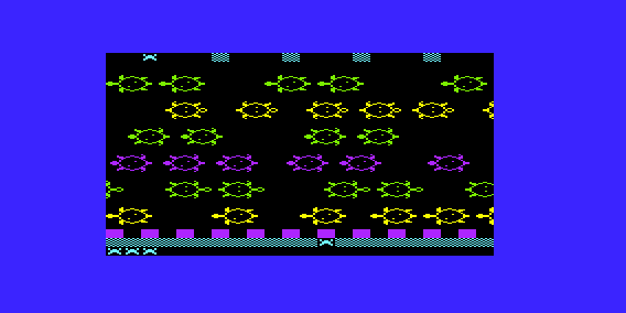 The graphics are minimalist, with pixelated sprites and simple animations that reflect the technical limitations and artistic styles of early 1980s games. The color palette is bright and vibrant, adding to the whimsical feel of the game.