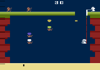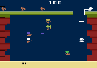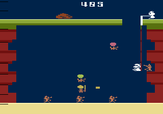 The objective of the game is simple yet challenging. Players control the mother pig, who rides a moving elevator up and down a tree trunk, armed with a bow and arrows. The wolves descend from the treetops using balloons, attempting to capture the piglets. The player’s task is to shoot down the balloons before the wolves reach the piglets. If too many wolves succeed, the game ends.