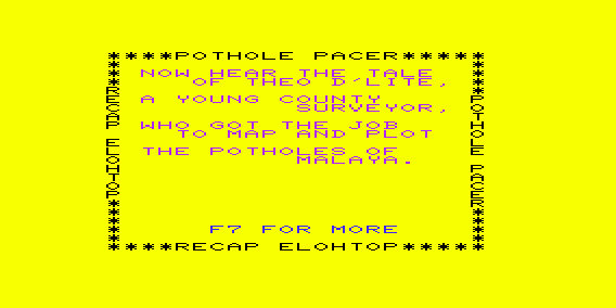 Pothole Pacer is a quintessential example of early 1980s gaming, released in 1984. The game captures the essence of simple yet engaging design that characterized many video games of that era. Players navigate their vehicles through increasingly challenging levels filled with potholes and other obstacles.