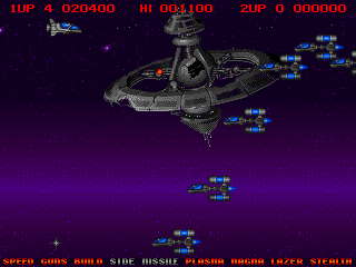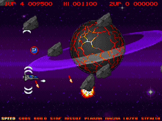 The gameplay involves guiding a ship through multiple stages filled with relentless waves of enemies and obstacles. The player’s objective is to defeat all adversaries while avoiding being hit. Power-ups are scattered throughout the levels, providing temporary enhancements such as increased firepower and shields, adding strategic depth and excitement.