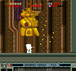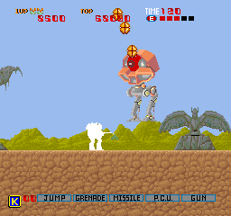 Players control a humanoid robot called ‘Oscar’, utilizing its abilities to shoot and jump through intricately designed levels. The game features multiple stages, each with different environments and enemies. Power-ups can be collected to enhance Oscar’s abilities, offering a strategic element to the run-and-gun mechanics.