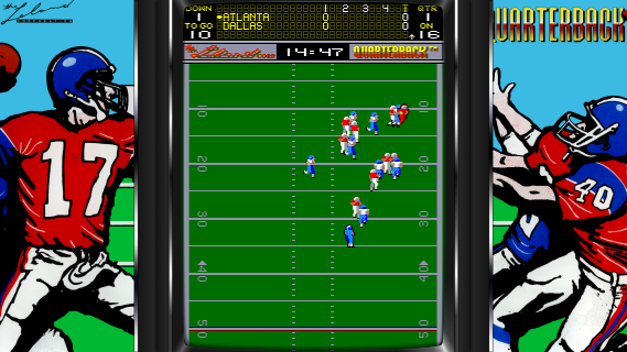 In 1988, Leland Corporation released a sports video game that immerses players in the fast-paced world of American football. This arcade-style game is designed to offer an engaging experience that captures the spirit of being on the field, focusing on the role of a key player in the sport.