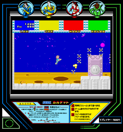 Released in 1987 by Sega Enterprises Ltd., this arcade-style action game offers players a dynamic multiplayer experience. Set in a futuristic space environment, players are tasked with battling alien enemies to restore peace across various intergalactic settings.