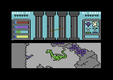 For a game from the late ’80s, it showcases colorful 8-bit graphics that vividly depict its imaginative settings. The audio, although simple by modern standards, provides an immersive soundtrack that enhances the mythical atmosphere.