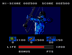 Released in 1988, this video game was developed by SEGA Enterprises Ltd. It is an action game inspired by the movie of the same name, delivering a thrilling experience based on the high-adrenaline adventures of the iconic character, John Rambo.