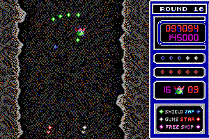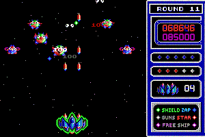 The game features a combination of arcade-style shooting and strategic maneuvers as players navigate their spacecraft through a series of challenging environments. The main objective is to overcome waves of alien enemies utilizing a varied arsenal. Each level presents distinctive challenges requiring quick reflexes and strategic decision-making.