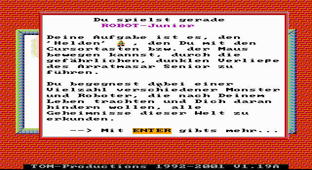 Released in 1991, this engaging video game by TOM Productions transports players to a futuristic world where they control a young and ambitious robot tasked with overcoming a series of challenging levels. The game embodies the quintessential charm of early 90s platformers, offering players an enjoyable blend of action and puzzle-solving elements.