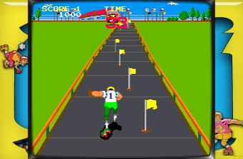 The game offers a traditional arcade experience, characterized by fast-paced action set on a roller rink. Players navigate challenging obstacles while aiming to score points, capturing the vibrant energy of the roller-skating culture prevalent in the 1980s.