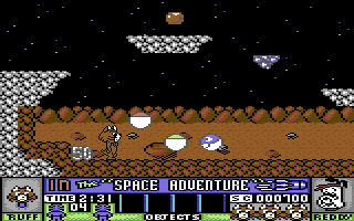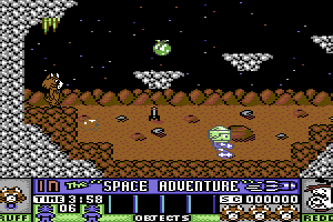 The game features colorful and vibrant 8-bit graphics that capture the whimsical and humorous essence of the characters. The sound design includes catchy background music and sound effects that enhance the immersive space adventure experience.