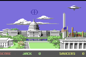 The gameplay revolves around using a terrestrial defense system to target and destroy alien flying saucers before they can unleash havoc. Players must be quick and precise, employing strategic shooting and timing to succeed. The controls are simple, allowing players to focus on honing their reflexes and aiming skills.