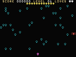 The game is a classic top-down shooter, where the player controls a character tasked with navigating a labyrinth filled with various insects and obstacles. The primary objective is to clear each level of enemies while avoiding traps and finding the most efficient path through the maze-like structures.