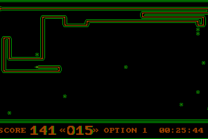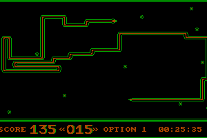 The objective of the game is to navigate a snake-like creature through a maze, collecting items and avoiding obstacles as it grows in length. The controls are straightforward, allowing players to move in four directions and requiring quick reflexes to navigate the increasingly challenging levels.
