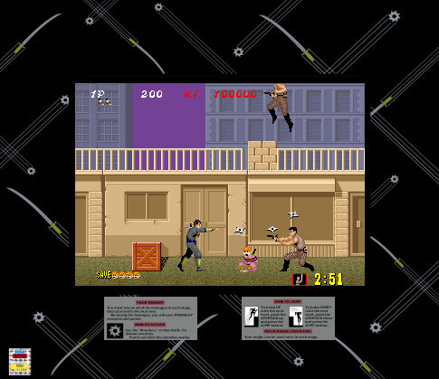Players assume the role of a highly skilled ninja, tasked with rescuing hostages and battling a variety of adversaries. The gameplay is characterized by its precise controls and fast-paced action. Players can utilize a variety of ninja weapons, such as shurikens and swords, to defeat enemies while employing stealth tactics to avoid detection.