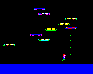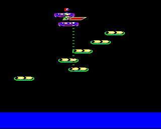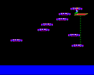 The gameplay involves strategic movements and quick decision-making as players progress through different levels. Each level presents unique challenges that test the player’s skills and adaptability. The game’s design reflects the classic arcade-style popular during the early 1980s.
