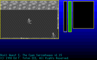 I’m sorry, I don’t have any information about a video game titled ‘Skull Quest I: The Cyan Sarcophagus’ from 1993.