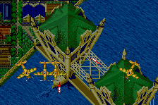 The game features classic 2D side-scrolling shooter mechanics. Players control a fighter plane, dodging enemy attacks and returning fire with an arsenal of weapons. As players advance, they encounter increasingly challenging levels that require quick reflexes and strategic maneuvering.