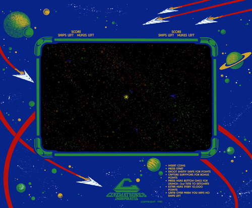 Released in 1981 by Cinematronics, this arcade game revolves around capturing the excitement and challenges of navigating space. It is a classic example of the popular space-shooter genre that pervaded early arcade culture.