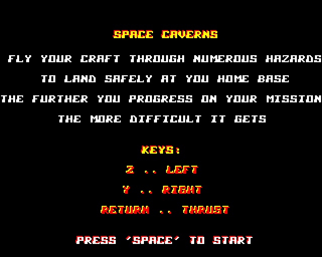 I’m sorry, but I couldn’t find any information on a video game titled ‘Space Caverns’ released in 1985 by COMPUTE! Publications, Inc.