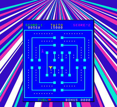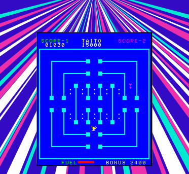 Space Chaser is an arcade game developed by Taito Corporation in 1979. It is a maze chase type game where the player controls a spaceship navigating through a series of labyrinth-like structures.