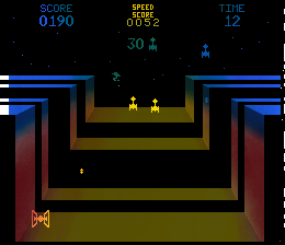 The game utilizes a simple yet effective control scheme that allows players to maneuver their spaceship and engage in combat against variably challenging foes. The objective is to eliminate enemy vessels to earn points and advance through stages of increasing difficulty. The visual and audio elements of the game contribute to an immersive arcade environment that captivates players for extended hours.