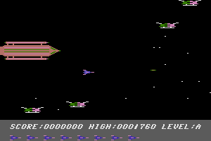 Players must skillfully maneuver their spaceship across the screen, ensuring the safety of the convoy by shooting down incoming enemy crafts. The key objectives include maintaining the integrity of the convoy and achieving the highest possible score before losing all ships.