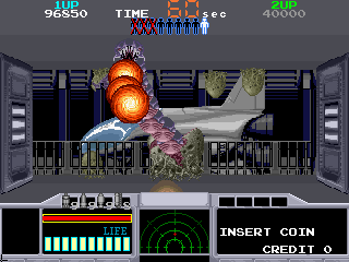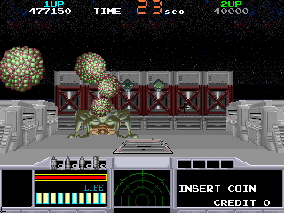 Set in a futuristic, sci-fi world, this rail shooter game by Taito Corporation immerses players in a first-person battle against hostile alien creatures. Released in 1992 for various platforms, the game allows players to navigate through a space colony teeming with extraterrestrial threats.