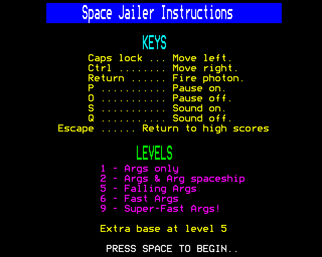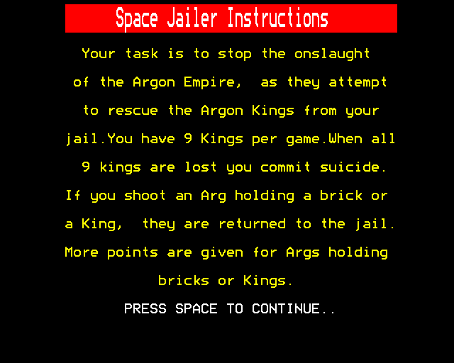 I’m sorry, but I couldn’t find any information on a video game titled “Space Jailer” released in 1983. If there is anything else you would like to know or another topic you would like me to assist with, feel free to ask!