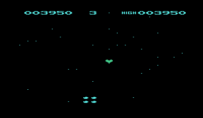 Released in 1982 by the developer Interesting Software, this video game is a space-themed action game. Players are tasked with navigating through various interstellar challenges, fighting alien creatures and dodging asteroids, while collecting resources to advance through levels.