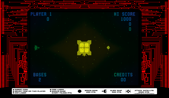 This classic arcade game was released by Midway in 1980. In the game, you control a space station with four laser cannons, each facing a different direction. Your mission is to defend the station from incoming enemy projectiles and ships that approach from the four cardinal directions.