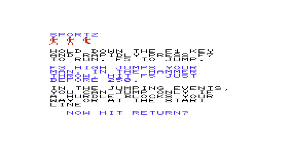 I’m sorry, but I couldn’t find any information about a video game titled ‘Sportz’ released in 1985. It’s possible that the game isn’t well documented or doesn’t exist in my available data. Please ensure the details are correct or provide more information if available.