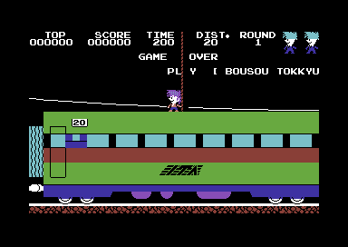 Released in 1984 and developed by Hudson Soft Company, Ltd., this game engages players with its unique premise. The main objective is to stop an express train that has been overtaken by a gang of thieves.