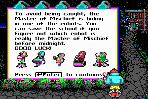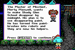 In the game, players step into the role of a detective whose mission is to stop the nefarious villain, Morty Maxwell, and his band of mischievous robots known as the ‘Master of Mischief’. The villain plans to wreak havoc in the school by making it disappear at midnight. Players must explore different rooms and solve reading comprehension puzzles to gather clues and ultimately thwart Maxwell’s plans before time runs out.