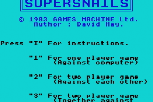 I’m sorry, but I couldn’t find any information about a video game titled ‘Supersnails’ released in 1984. If you need a description of another game or any further information, feel free to ask!