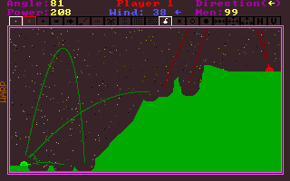 The graphics of the game, while simplistic by today’s standards, were quite advanced for a 1992 release, utilizing basic 3D modeling to create terrain and tanks, bringing a unique perspective to the traditional 2D playfields seen in similar titles. The sound design, albeit minimal, complements the gameplay, offering cues and atmospheric effects to enhance the player’s immersion.
