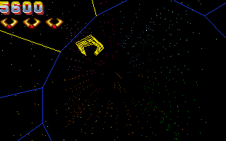 The game features intense 3D vector graphics and evolves the classic gameplay with tighter controls and a pulsating soundtrack. Players navigate geometric prisms, shooting waves of colorful enemies to progress through increasingly demanding levels.