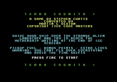 I’m sorry, I couldn’t find information on a video game titled ‘Terra Cognita’ from the year 1986. If you have any other inquiries or need information on a different topic, feel free to let me know!