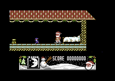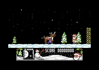The game features pixel art graphics typical of the late 80s, accompanied by a soundtrack that enhances the festive experience. The combination of visuals and music creates an engaging atmosphere that captures the essence of Christmas.