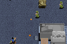 The game is a vertically scrolling shooter where players take control of a heavily armed motorcycle, journeying through various levels filled with enemy combatants and obstacles. Players must deftly maneuver and strategically employ an arsenal of weapons to defeat enemies and bosses, showcasing a blend of skill and quick reflexes.
