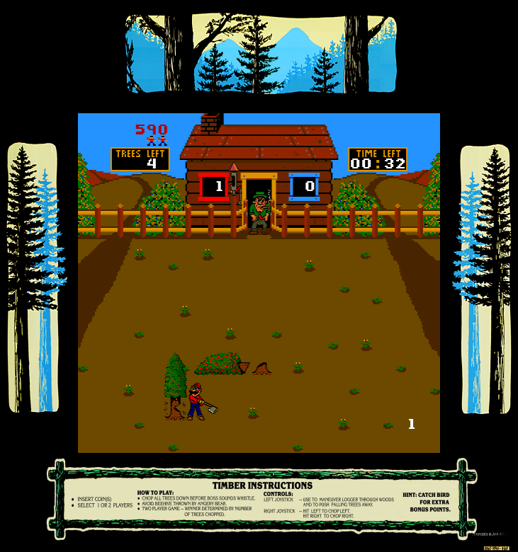 Released in 1984 by Bally Midway Mfg Co., this arcade game presents a thrilling experience of competitive log chopping. Players step into the boots of a lumberjack, tasked with chopping down trees while avoiding obstacles and outpacing other lumberjacks.